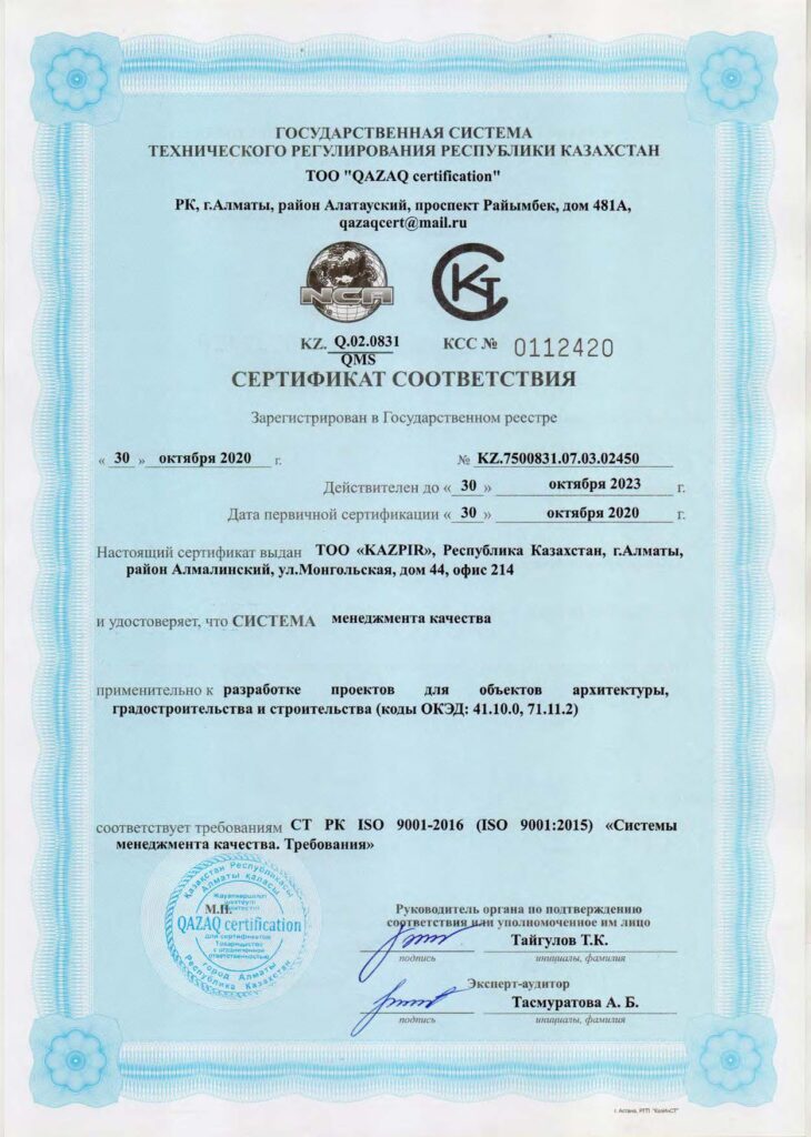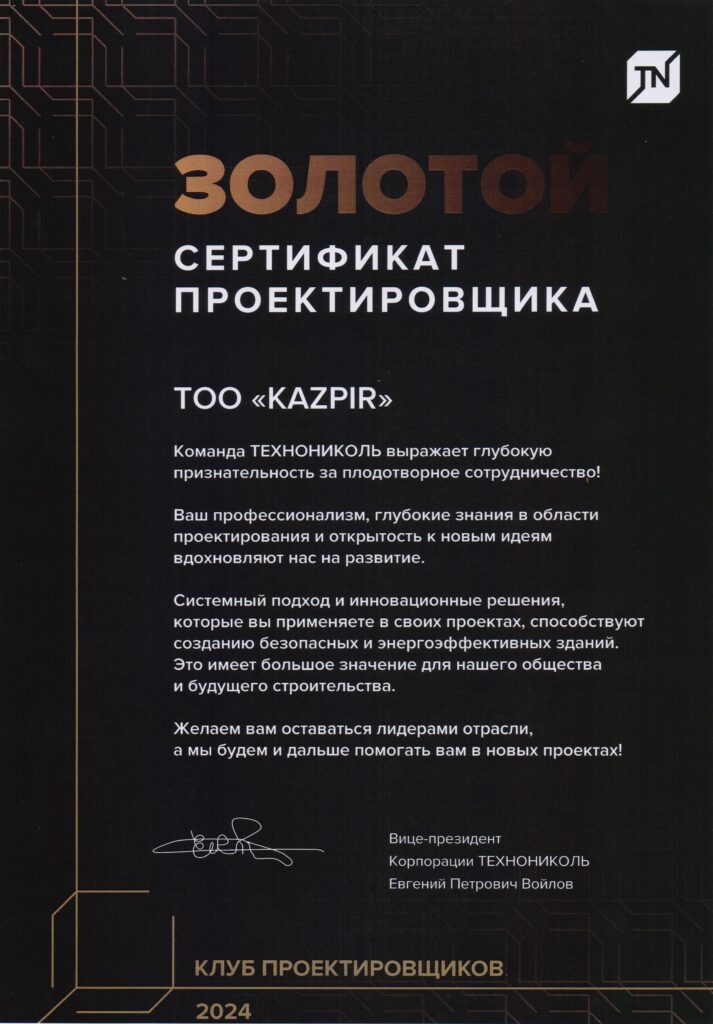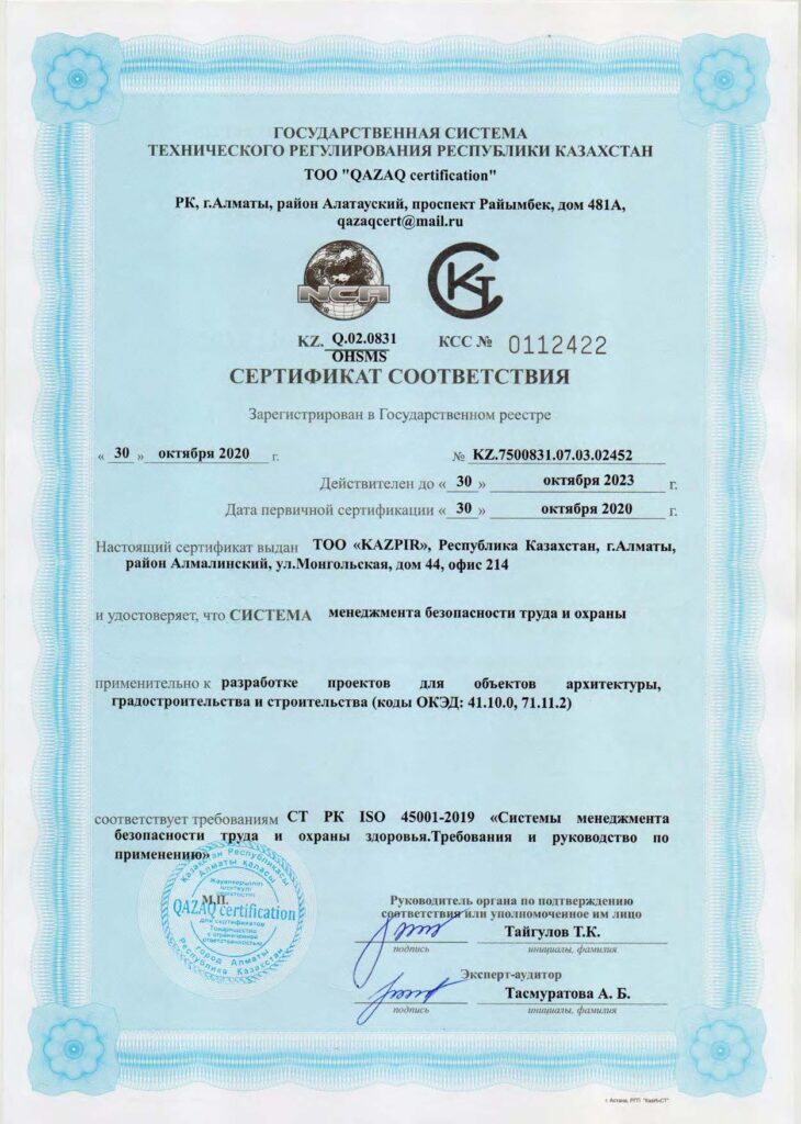 Проектно-инжиниринговая компания «KAZPIR» — проектная организация с частной формой собственности, созданная в 2005 году. Специалисты нашей компании являются авторами, а также участниками проектирования и сопровождения многих уникальных объектов в Алматы и областных городах Казахстана.