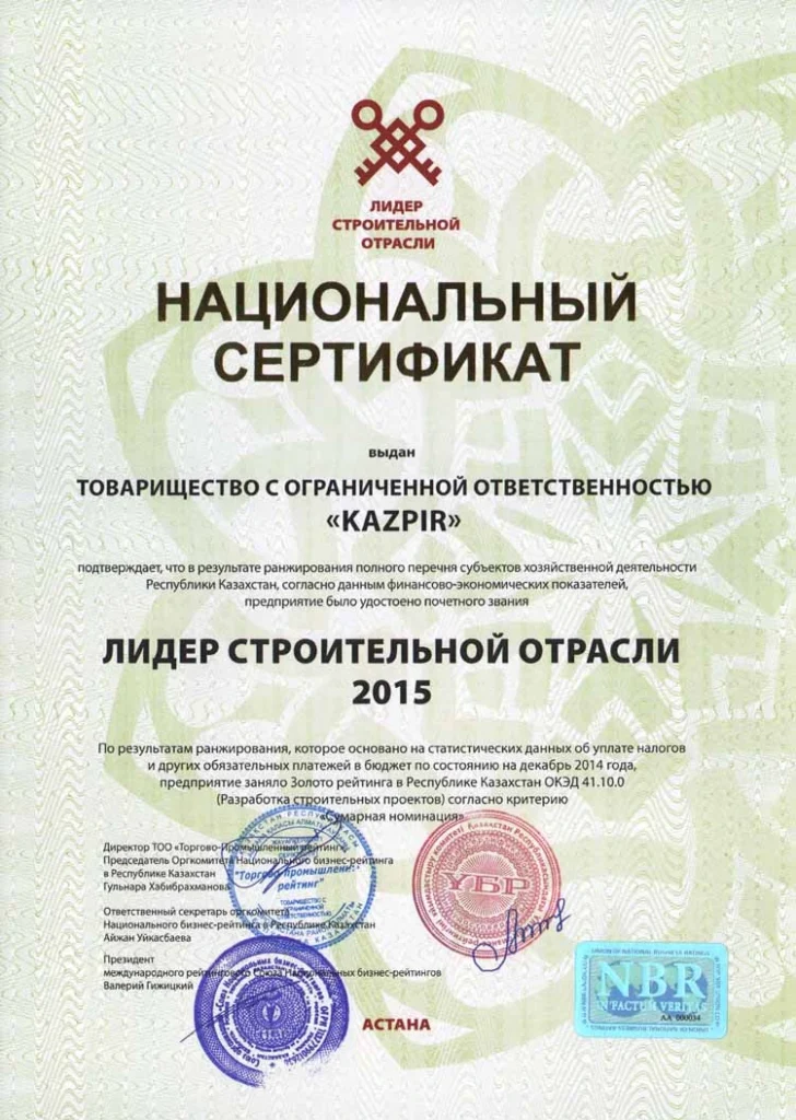 Проектно-инжиниринговая компания «KAZPIR» – одна из наиболее динамично развивающихся компаний на проектно-строительном рынке страны со штатом высококвалифицированных сотрудников, имеющих значительный опыт в проектировании объектов первой и второй категорий сложности различных функциональных назначений. Наш опыт и профессионализм позволяет обеспечить высокое качество услуг для наших клиентов.