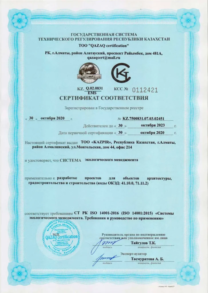 Дополнительно наши специалисты имеют значительный опыт в адаптации и сопровождении проектов известных зарубежных компаний на соответствие нормативам, действующим в Республике Казахстан.